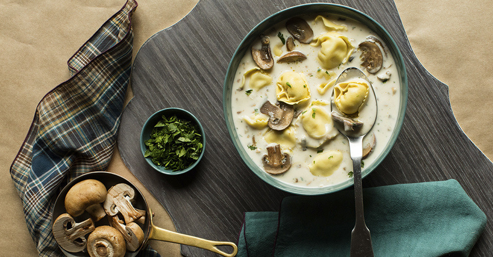 Pilzcremesuppe mit “Tortelloni Funghi Porcini”