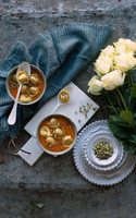 Kürbiscremesuppe mit Tortelloni Funghi Porcini und Kürbiskernen
